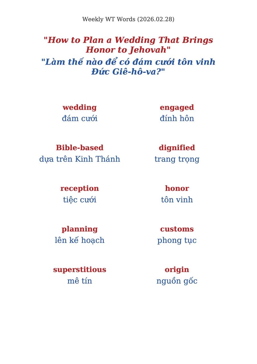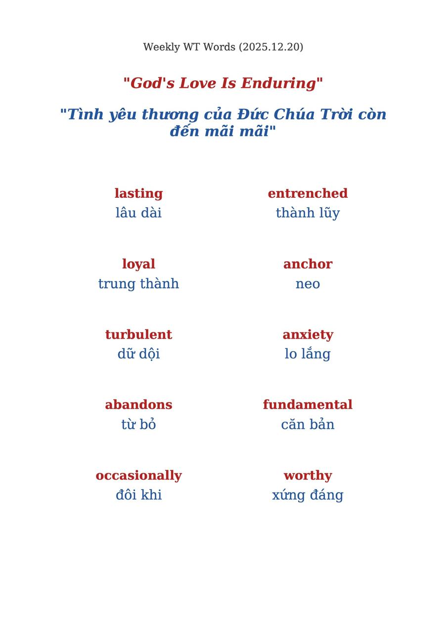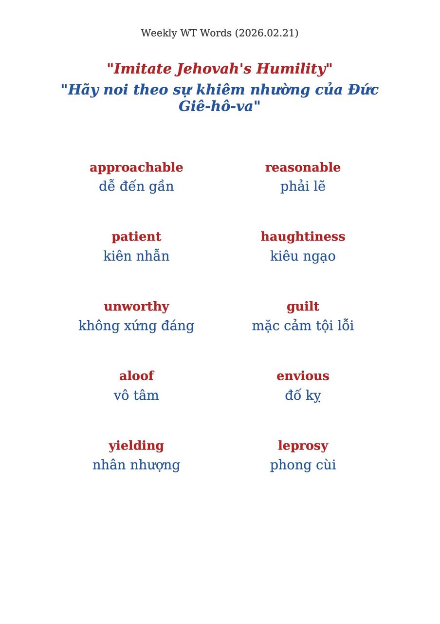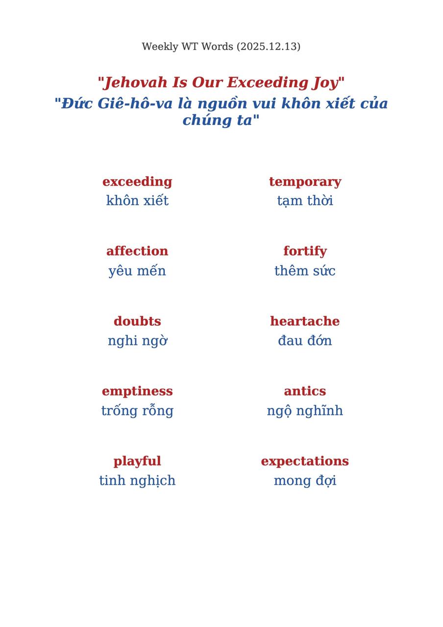Learn new Vietnamese Vocabulary from the Watchtower each week.