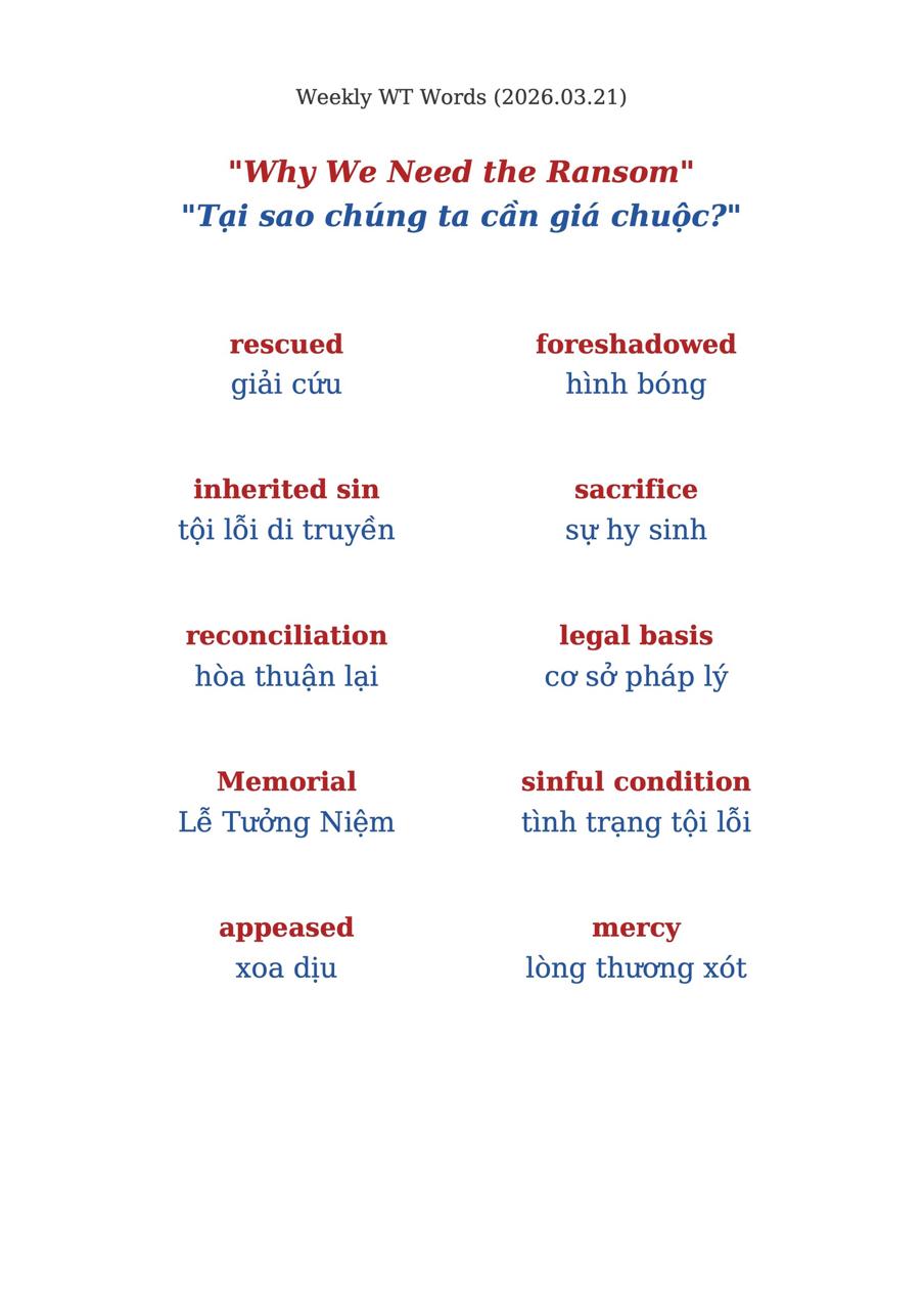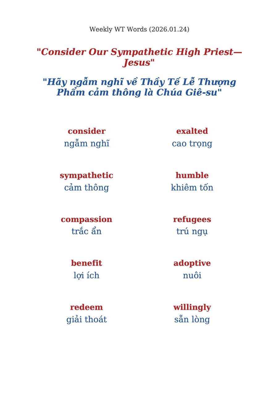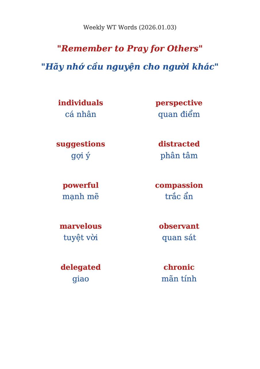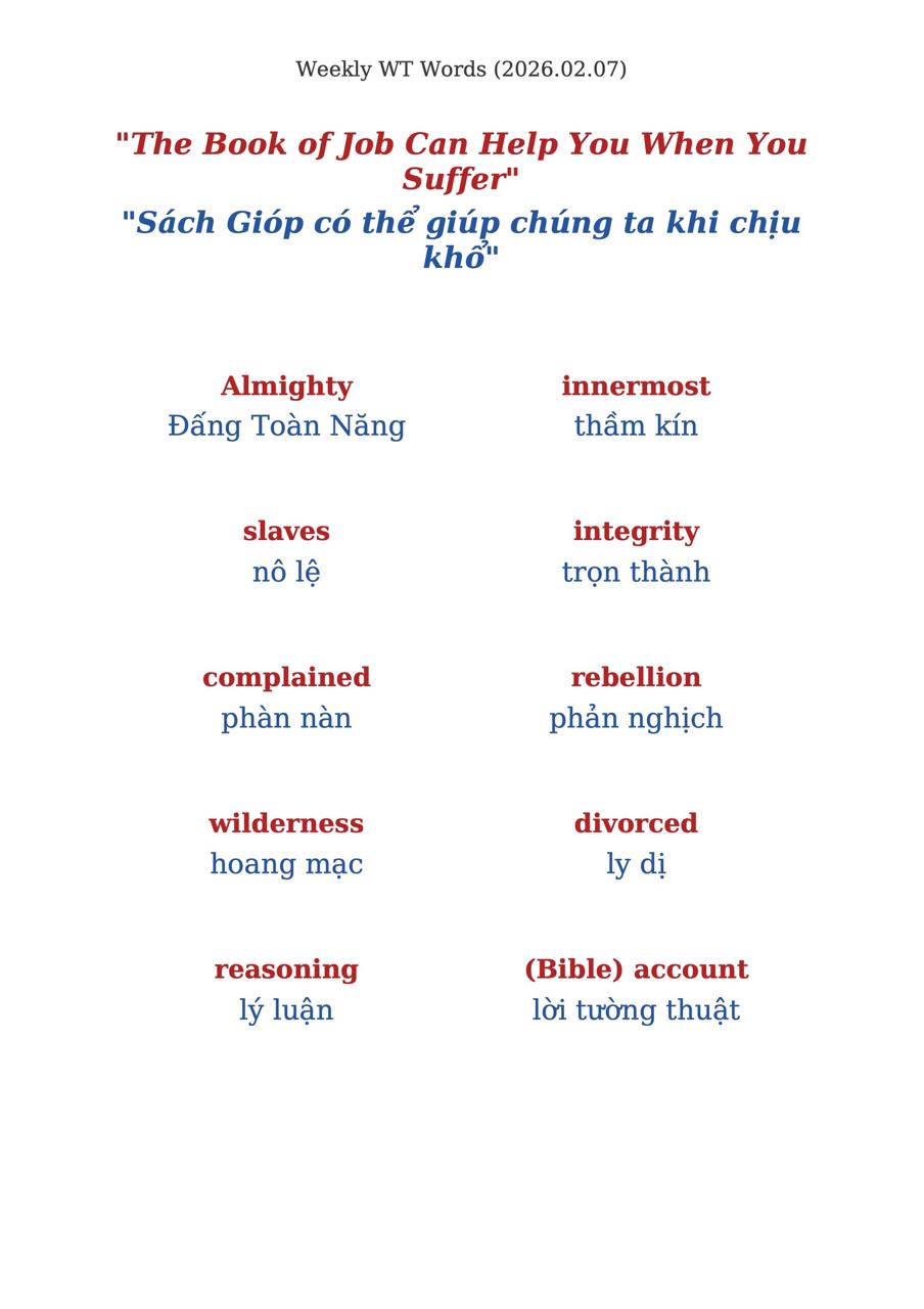 Learn new Vietnamese Vocabulary from the Watchtower each week.