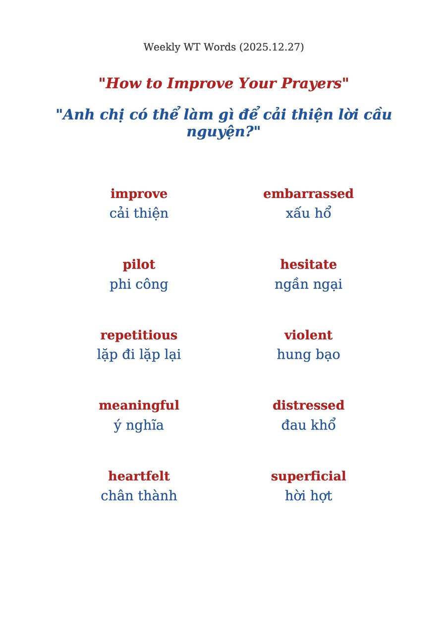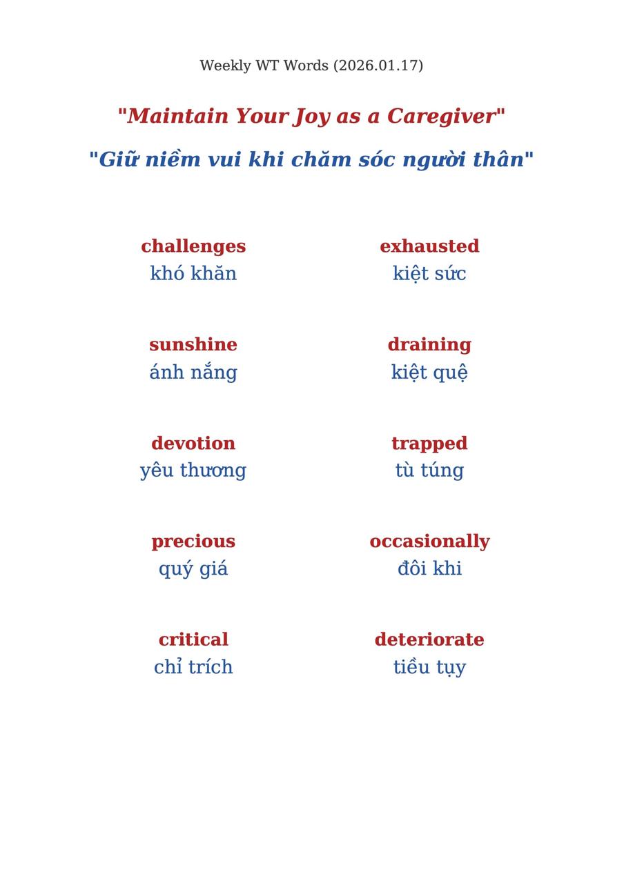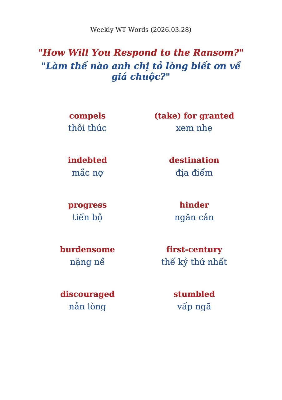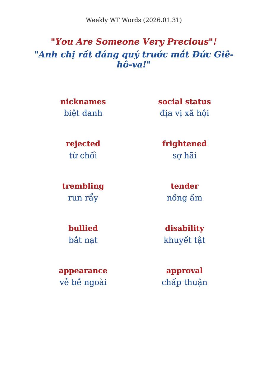Learn new Vietnamese Vocabulary from the Watchtower each week.